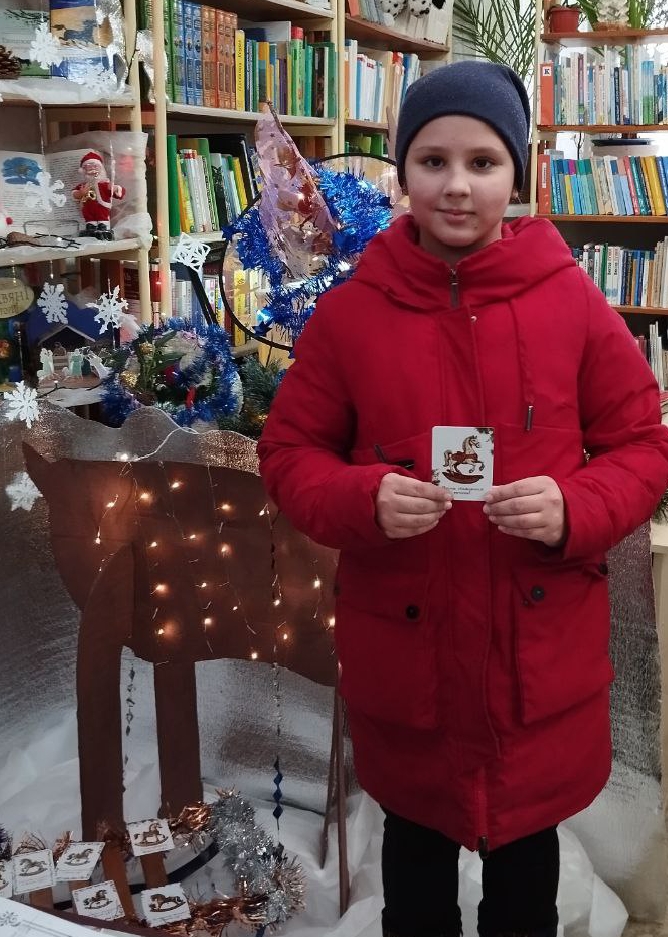 Вот и наступил Новый год! В первые дни работы в библиотеке прошла акция «День первого читателя», во время которой были разыграны номера формуляров от 1 до 26. Номера были написаны на карманных календариках на 2026 год с изображением символа года – Лошади. а привез нам эти календарики Новогодний Олень в своих санях. Нужно было выбрать понравившуюся лошадку и назвать написанный на обороте номер. Первым читателем 2026 года стал Греченков Хасан, ученик 7-а класса школы №1. Счастливый номер – 26 - вытащила Радкова Анастасия, ученица 6-а класса той же школы. Поздравляем и ждем в библиотеке!