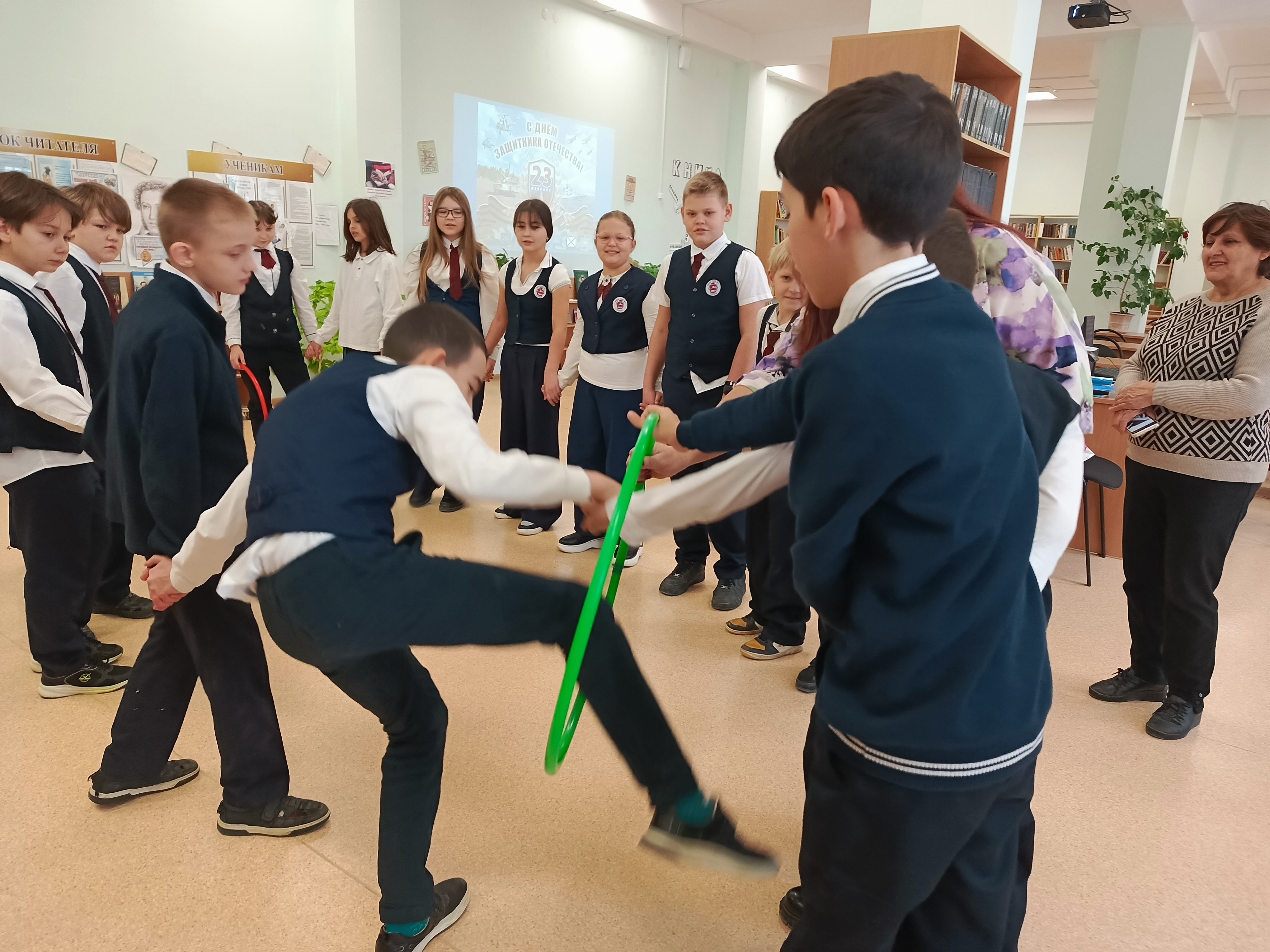 23 февраля в России отмечается День Защитника Отечества. Для учеников, 3 «В», 4« А», 4 «Б» и 4 «В» была поведена познавательно – игровая программа «Гордится Русь богатырями». В ходе мероприятия ребята отвечали на вопросы викторины , отгадывали «военные» загадки, участвовали в конкурсах и в заключении мероприятия посмотрели мультфильм.